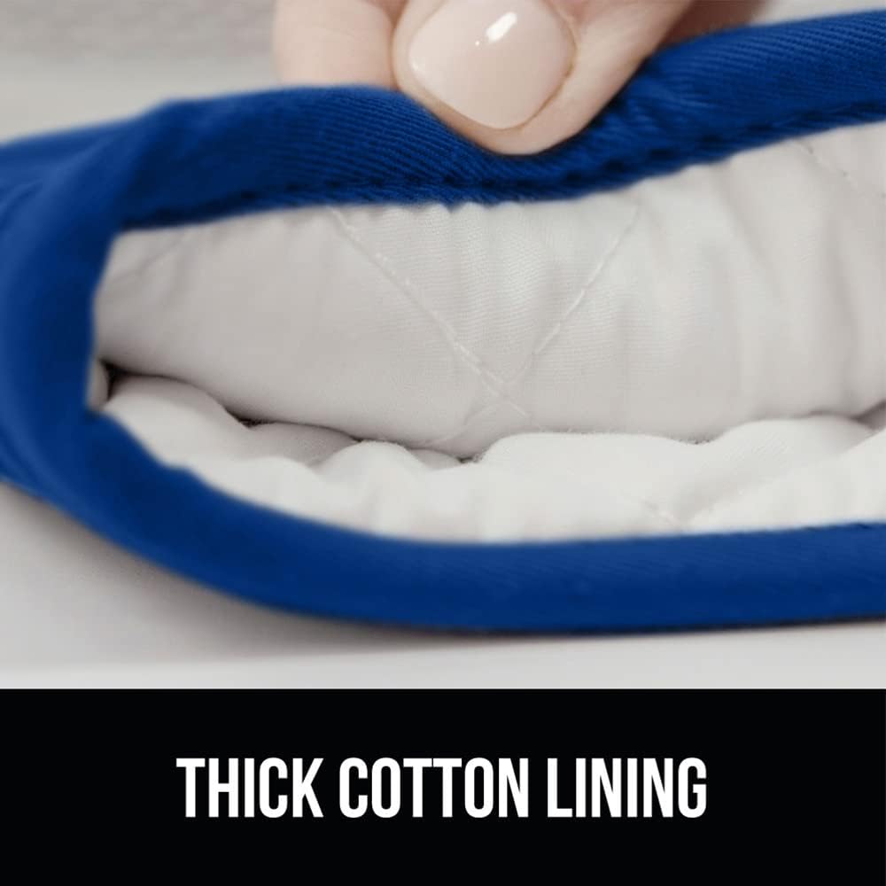 GORILLA GRIP BPA-Free Soft Silicone Oven Mitts and Pot Holders Sets of 4, Heat Resistant Waterproof Cooking Gloves, Thick Cotton Lining, Flexible Gripping for Baking Grilling, Kitchen Trivets, Blue