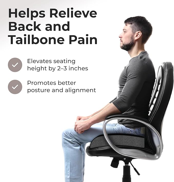• LIFTING CUSHION - PAIN RELIEF: Lifts seating height 2-3 inches. Whether in the car, the office, or on your favorite chair, The Kӧlbs Comfort Seat Cushion is sure to offer you hours of seating comfort. Ideal for post-surgery, hemorrhoids, back pain, leg pain, sciatica, memory foam seat cushions for office chairs, or any time extra seating comfort is needed. Use as a car seat cushion, desk chair cushion, wheelchair cushion or coccyx seat cushion. From Kӧlbs, the leader in medical seat cushions.