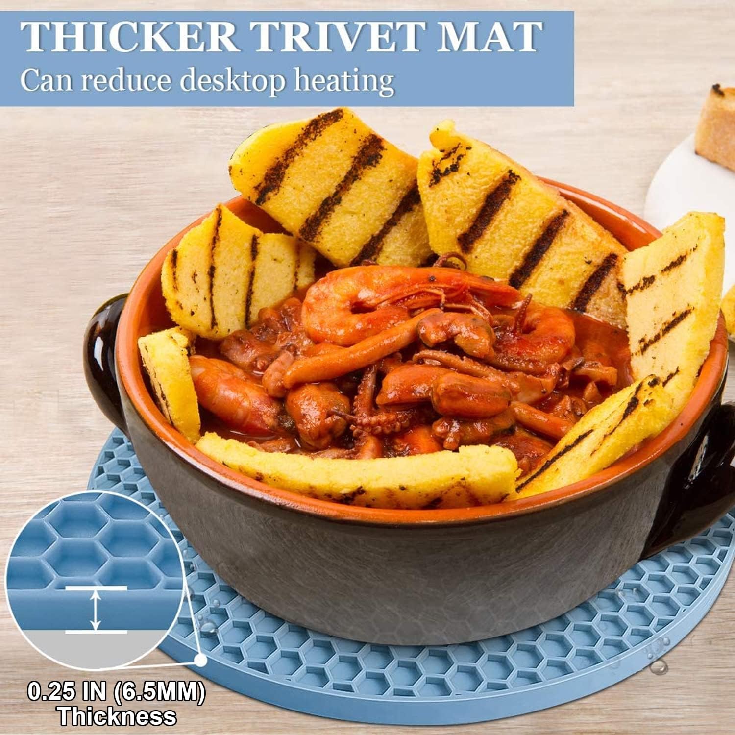 - PREMIUM FOOD GRADE SILICONE: Wafos silicone trivet mats are made of premium food grade silicone. Heat resistant from -104℉ to 446℉, safe for oven, microwave, freezer and dishwasher. BPA free and won't absorb odor, stain, rust, crack or chip, safe for your health. Flexible and more long-lasting for your longer time use