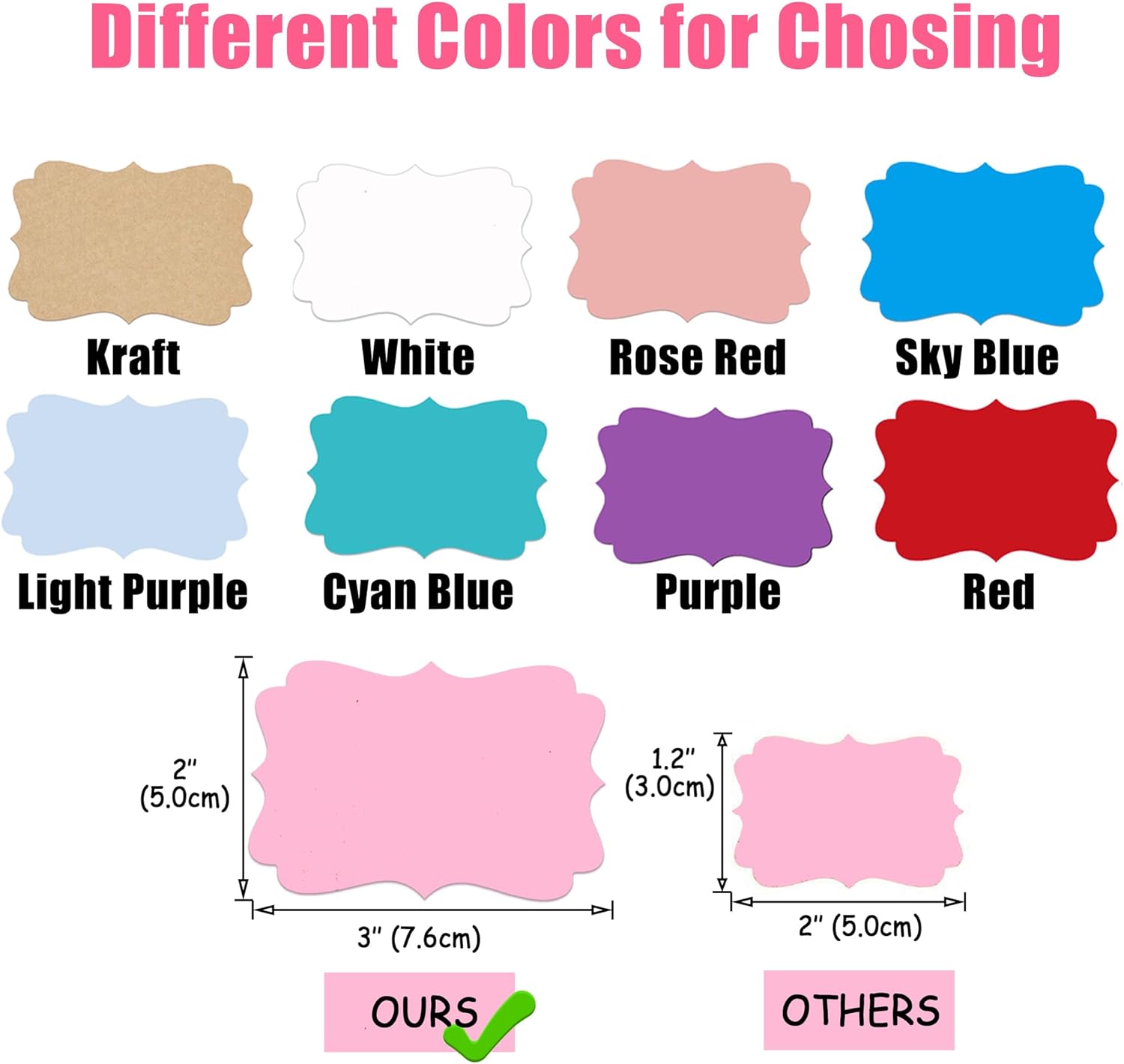 - 【What You Get】You will receive 200pcs (1 roll) of 2" x 3" pink gift tags stickers in the package, come with 4 fancy shapes. Especially designed for daily label use and also suitable for business labeling, office or school marking, home food labeling. Its large enough to write on the message you want to express. You have different colors for choosing