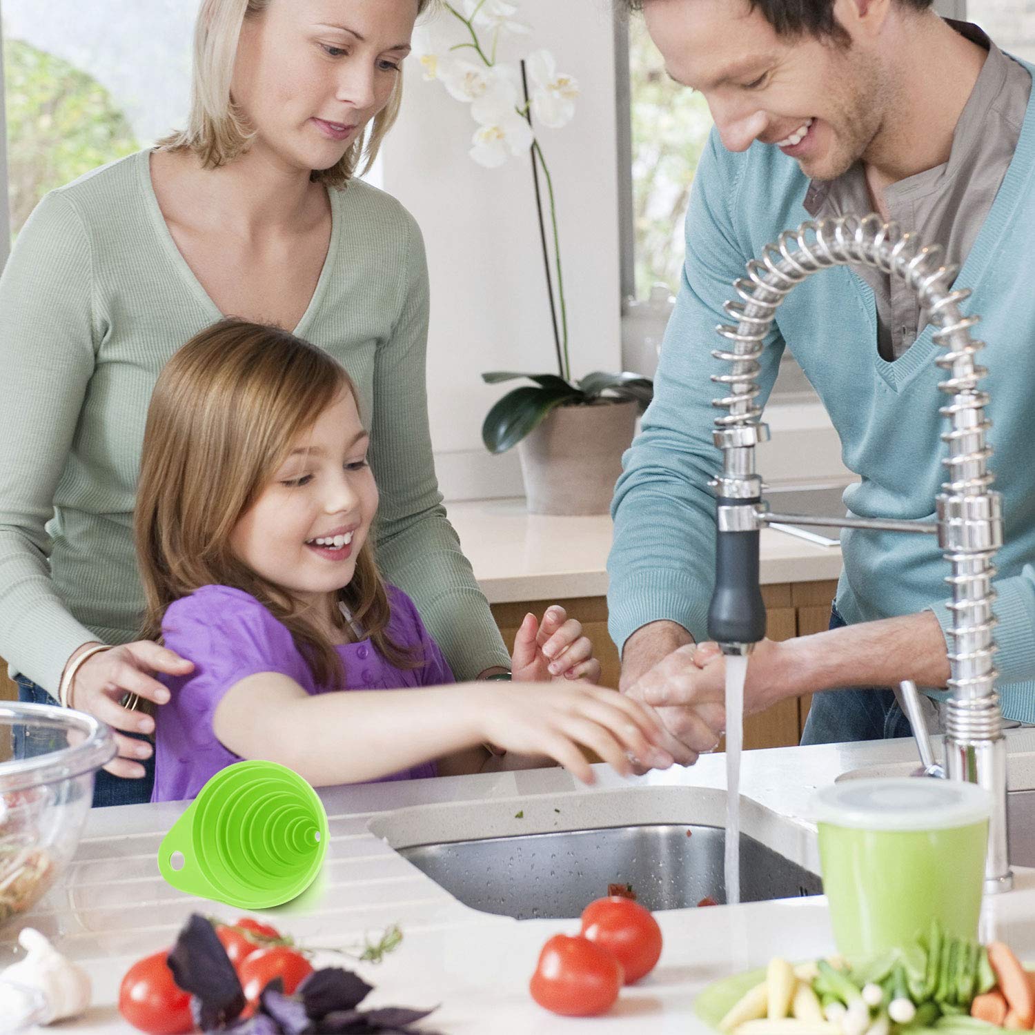 Funnels for Kitchen Use, Food Grade Silicone Collapsible Kitchen Funnel (Green)
