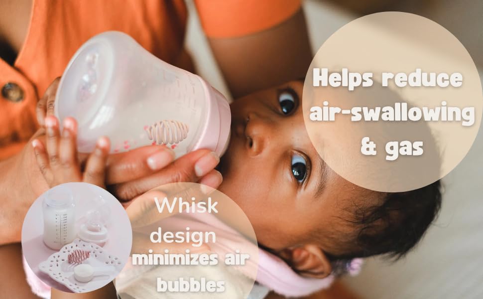 - MINIMIZE AIR BUBBLES IN FORMULA : Eliminate foamy bubbles which cause gas in a babies stomach with the baby bottle shaker ball. The added number of spirals and thickness reduce froth greatly.