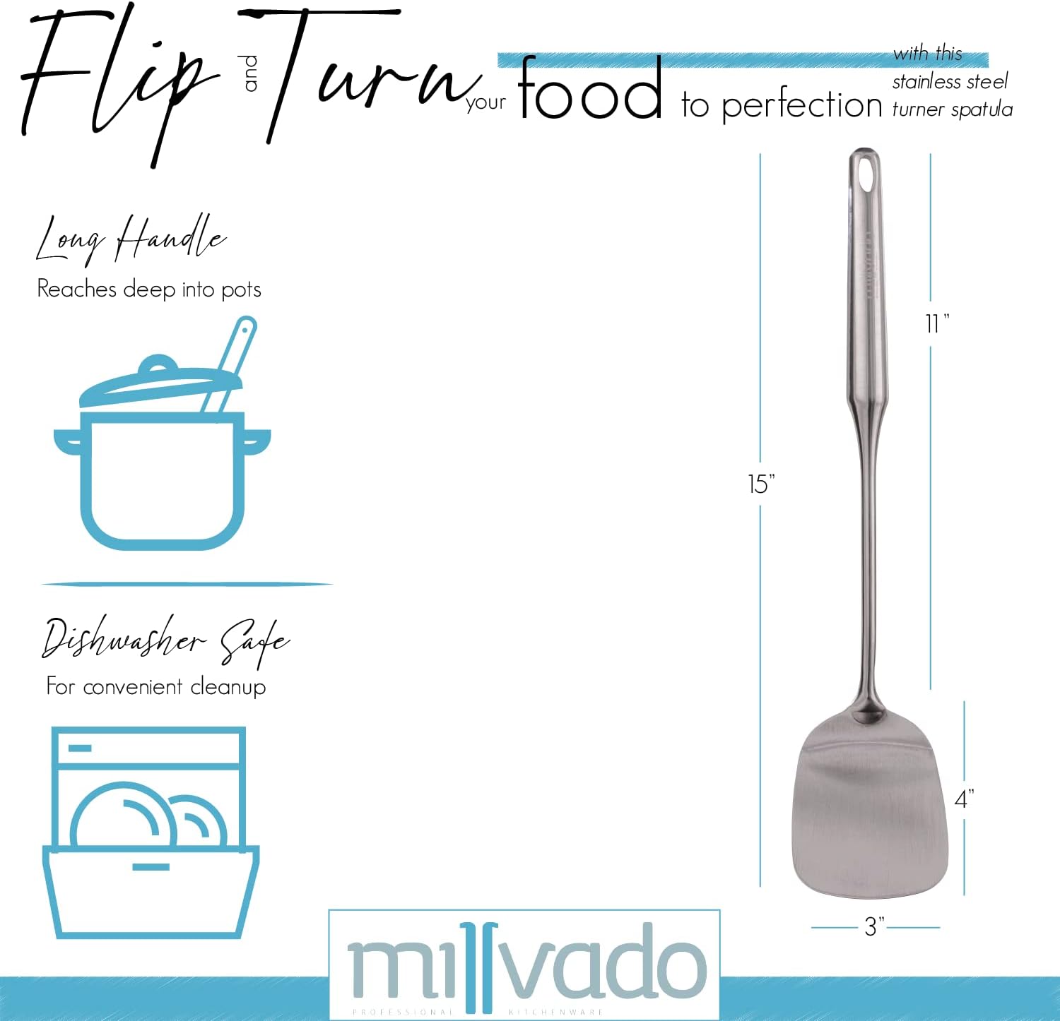 Stainless Steel Cooking Spatula,15 Inch Metal Turner, Kitchen Slotted Flipper For Grills, Camping BBQ’s, Frying Pancakes, Burgers, Large Cookware For the Professional Chef