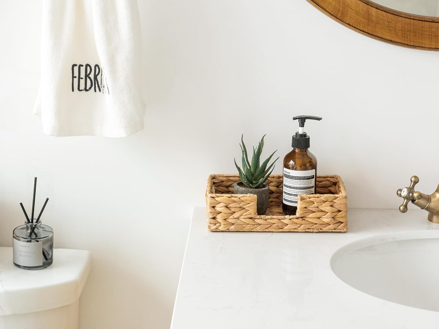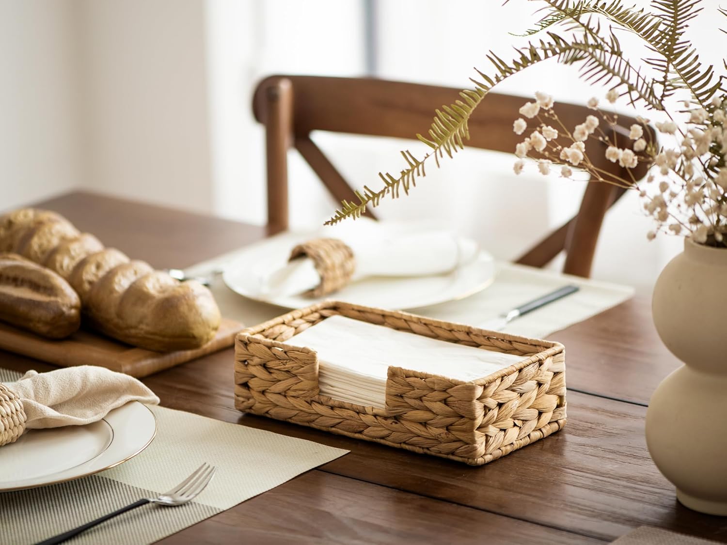 StorageWorks Water Hyacinth Napkin Holder for Bathroom, Wicker Napkin Baskets for Bathroom, Guest Towel Holder, 9 ¾"L x 5"W x 2 ¾"H, 1 Pack