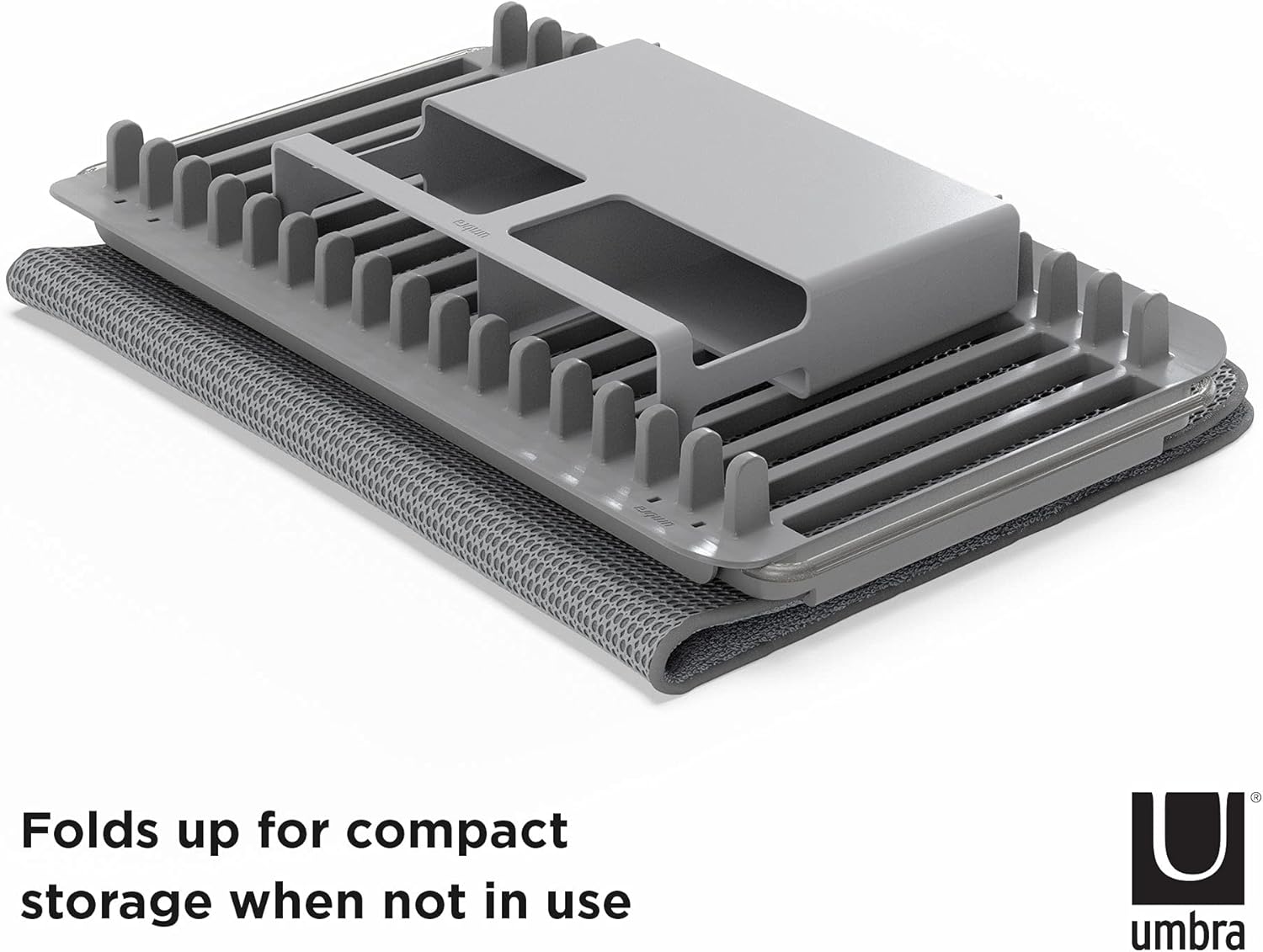 Umbra Udry Rack and Microfiber Dish Drying Mat-Space-Saving Lightweight Design Folds Up for Easy Storage, Over The Sink, Charcoal
