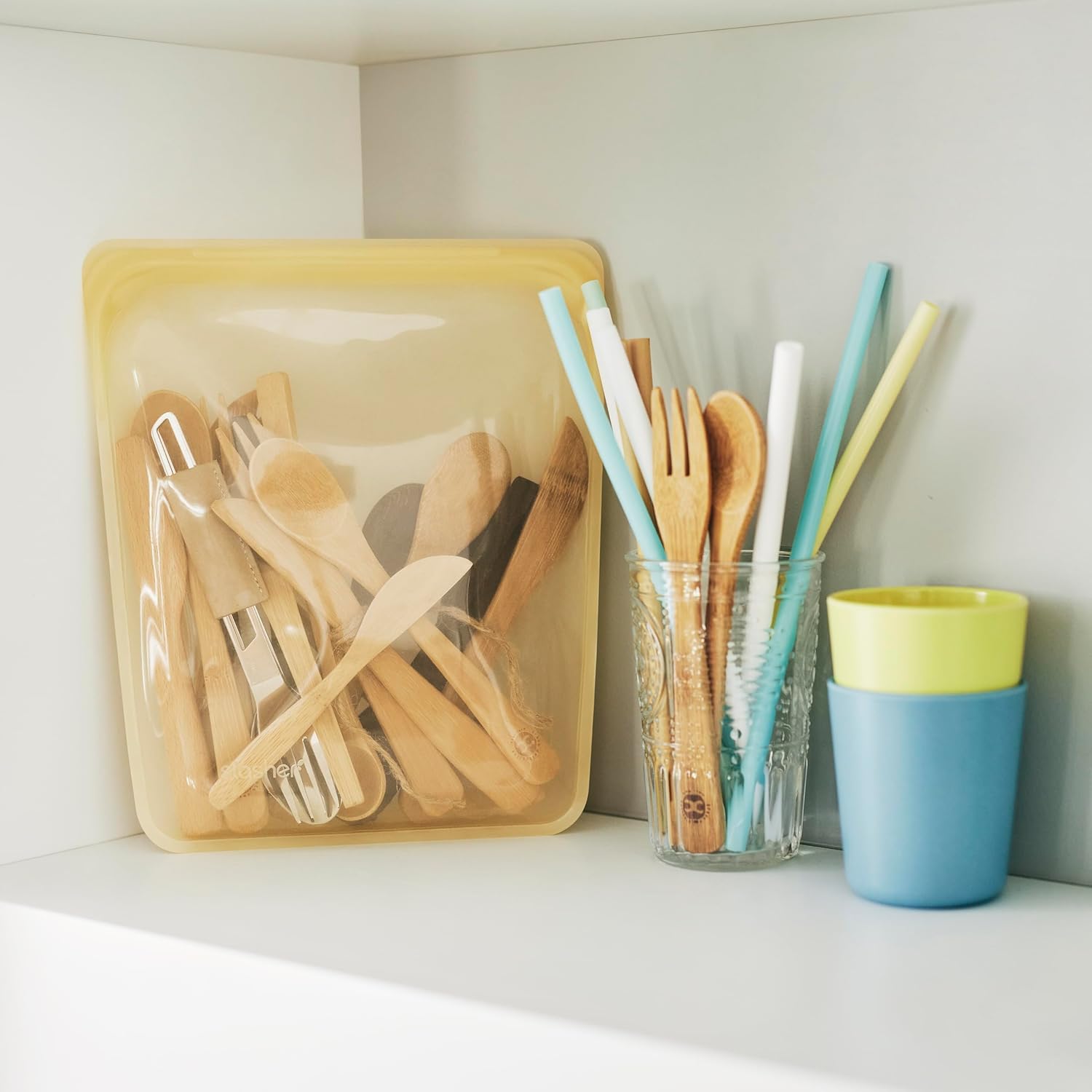 Stasher Premium Silicone Reusable Food Storage Half Gallon Bag, Yellow, Microwave, Sous Vide, Dishwasher, Oven and Freezer Safe, BPA Free, Leak-free, Eco-friendly, 64 Oz