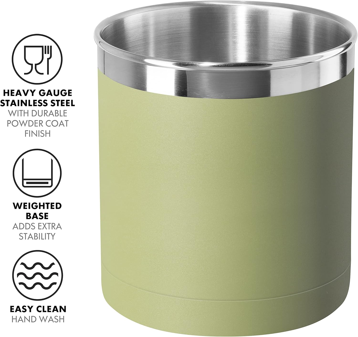 Oggi Stainless Steel Jumbo Utensil Holder - 7" Utensil Caddy, Weighted Base for Stability - Extra Large Utensil Crock and Countertop Utensil Organizer, Olive