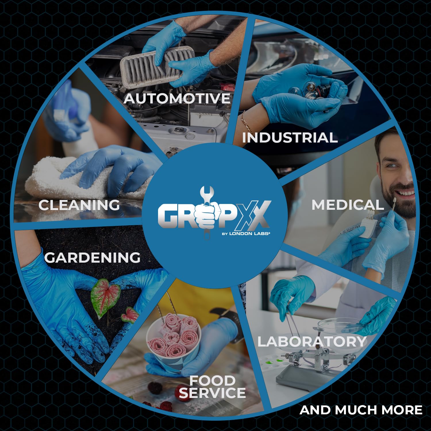 - ✔️ PRO-LEVEL PROTECTION: Trusted across industries including healthcare, food service, tattoo supplies, beauty salons, cleaning supplies, janitorial supplies, painting, veterinary and pet care. Whether you're using them as mechanic gloves, tattoo gloves, cleaning gloves, cooking gloves, London Labs blue nitrile gloves deliver superior protection, comfort, and grip. Ideal for professionals and households alike—from plastic gloves for food prep to household cleaning supplies.