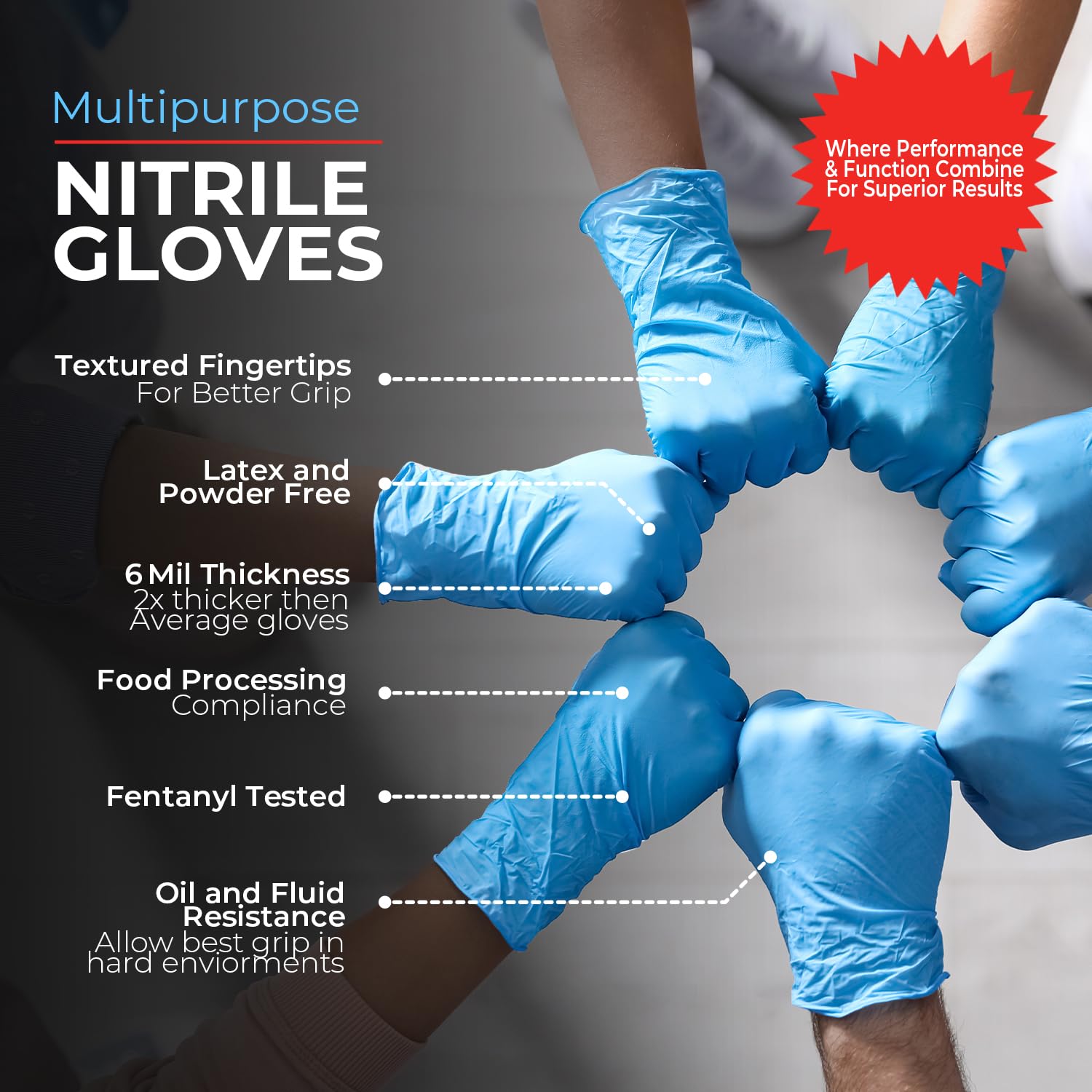 - ✔️2X THICKER THAN STANDARD GLOVES: Made from premium 6 mil nitrile exam gloves, these heavy duty gloves are engineered to outperform typical disposable gloves, offering nearly 2X the thickness of standard glove options. This added strength creates a tough, dependable barrier against punctures, tears, and exposure to solvents, oils, and chemical agents. Unlike latex gloves, they’re allergy-safe, and unlike vinyl gloves, they won’t rip, stretch out, or degrade under pressure.