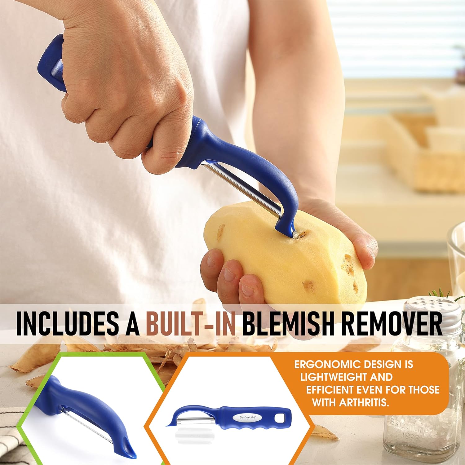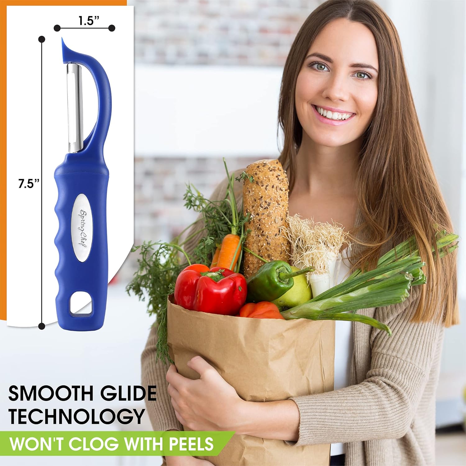 Spring Chef Premium Swivel Vegetable Peeler, Soft Grip Handle and Ultra Sharp Stainless Steel Blades - Perfect Kitchen Peeler For Veggie, Fruit, Potato, Carrot, Apple - Sapphire
