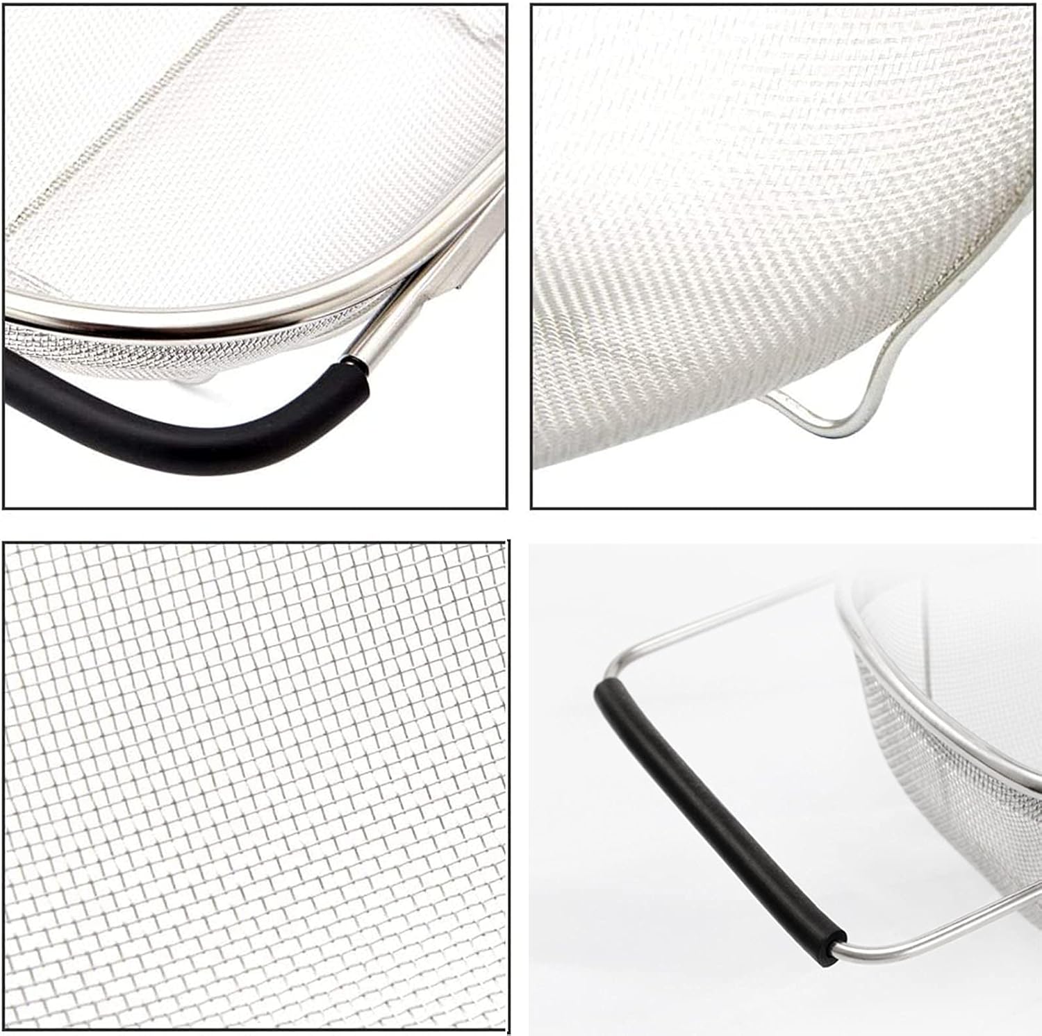 - This 4 quarts strainer is ergonomic, space-saving design, so they do not take up much needed room in your kitchen cupboards. Bottom wear-resistant non-slip design, easy to use. Using stainless steel materials, no smell.