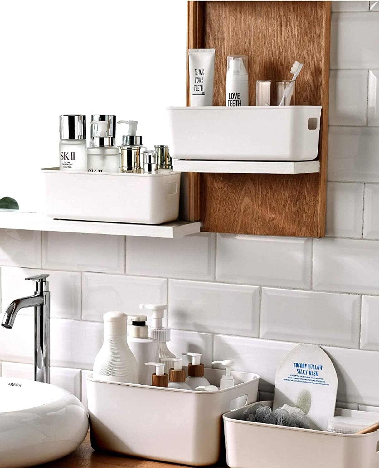 - 5-【Perfect Size】- "11 x 7.9 x 3.7" These storage shelves will organize your bathroom accessories while fitting in with your kitchen organization and storage. Its Flexible Size will make its use as your storage box, under bed storage, mail organizer and storage drawers. Comes in a value pack of 3 !