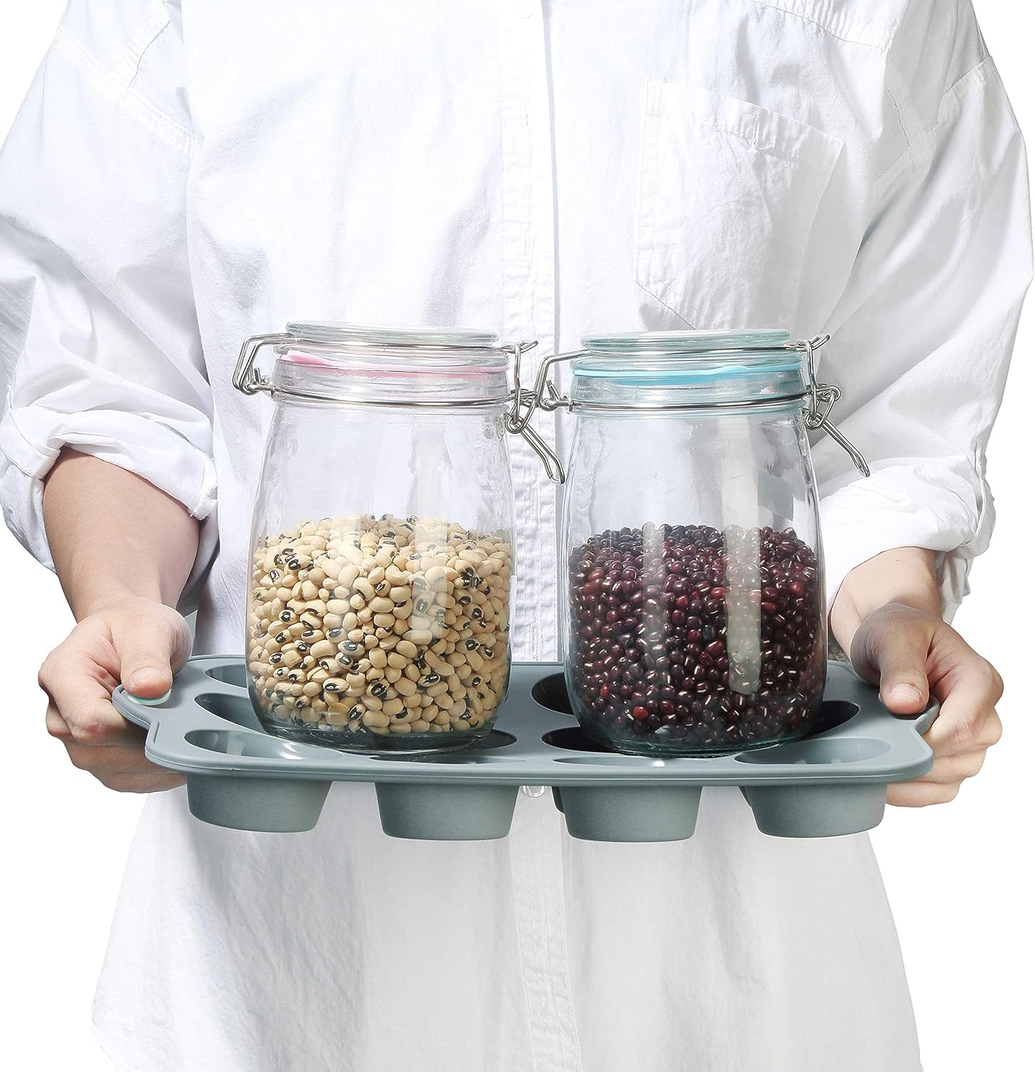 To encounter 8 in 1 Silicone Baking Set - 6 Cake Molds - 2 Silicone Baking Mat, Nonstick Cookie Sheet, Cake Muffin Bread Pan with Grips and Metal Reinforced Frame More Strength, Light Grey
