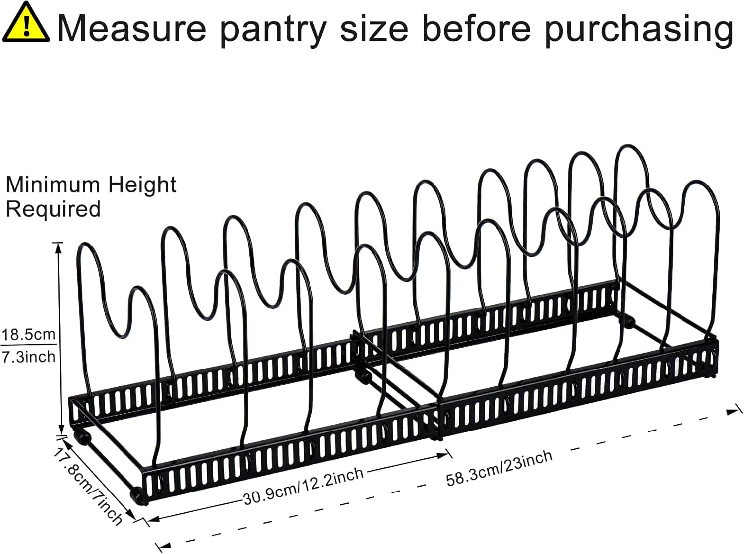 - Adjustable Pan Organizer Rack: The pan organizer is suitable for cutting boards, pan, pot and pan lids. You can adjust the pot and pan lids organizer to suit the pots and pans. Suitable for cabinet organize and keep the kitchen well organized