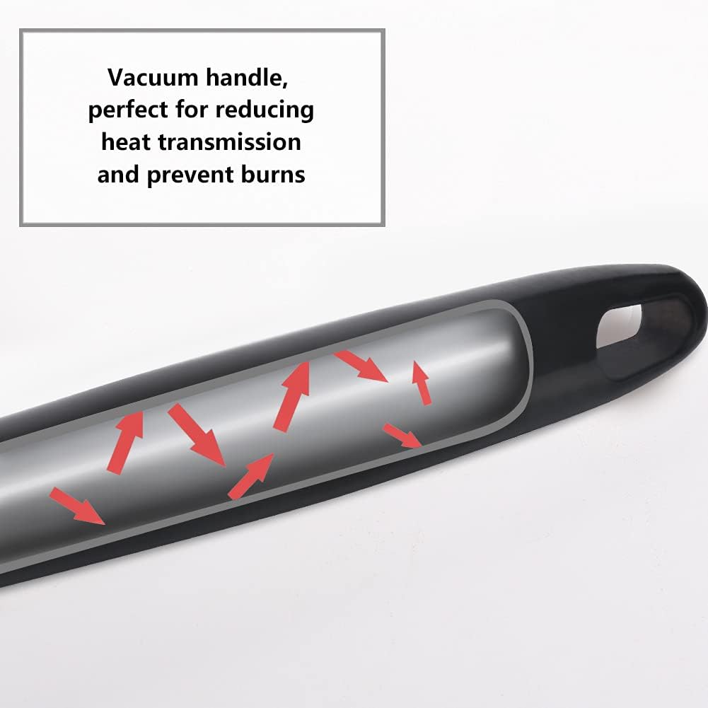 - Length: 13.7 Inches, suitable for most cooking utensils. Vacuum ergonomic round handle for easily holding, reducing heat transfer, not easy to burn your hands.