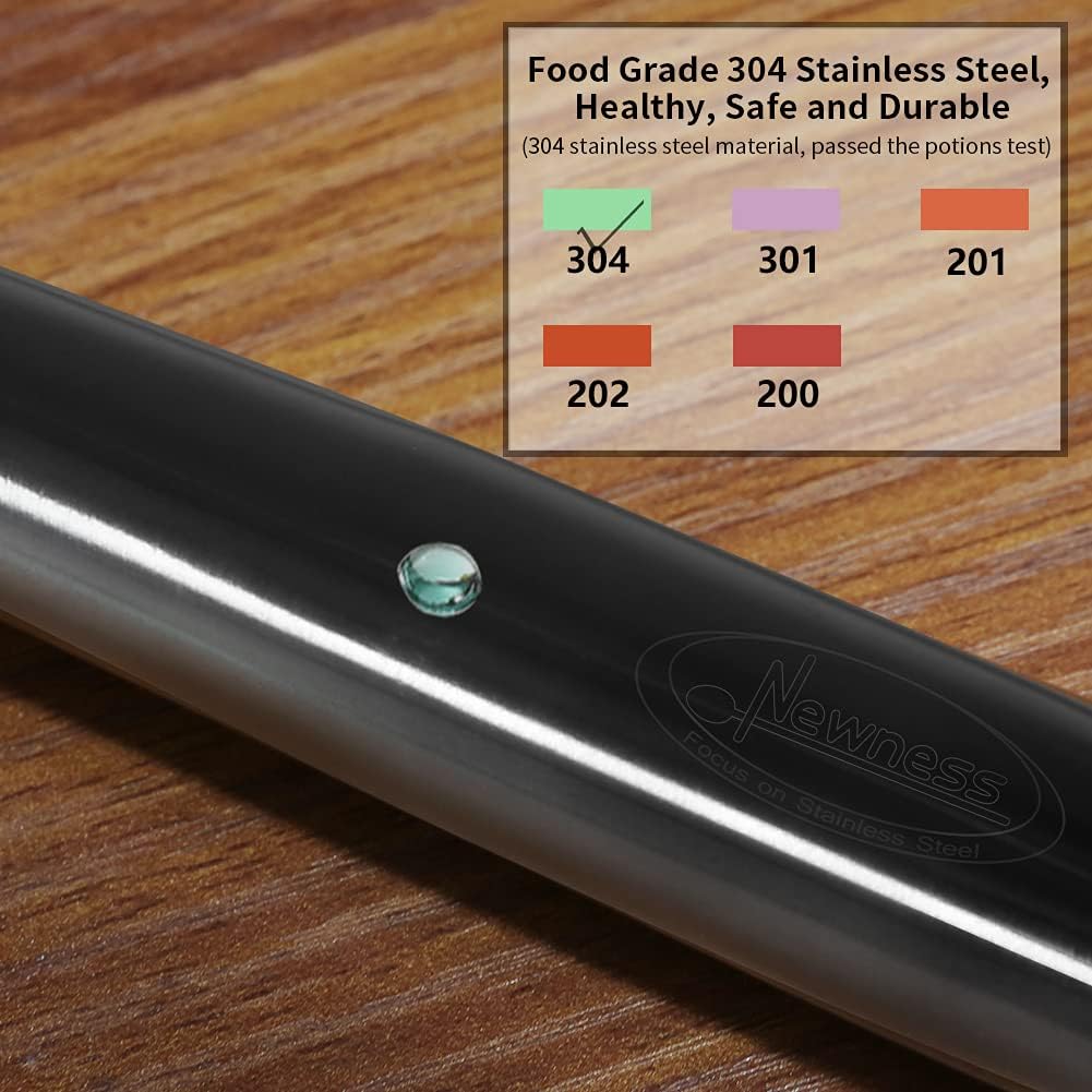 - Made of food grade 304 stainless steel. Safe, rustproof, durable and will last long. Modern design in line with popular vision, loved by culinary enthusiasts, Newness Soup Ladle is the ideal choice for you.