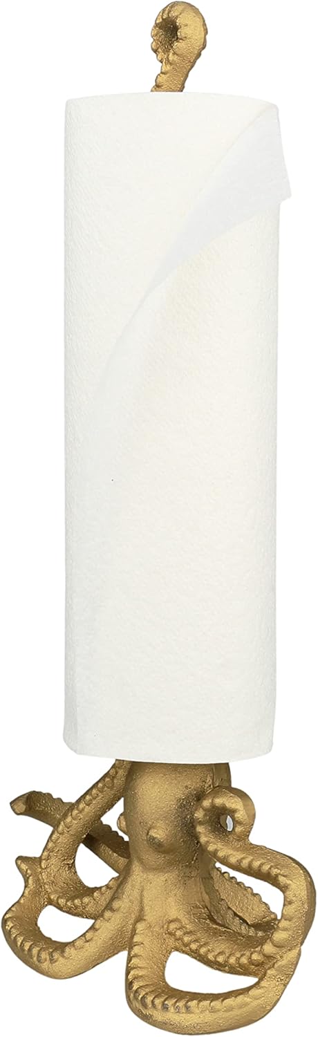WallCharmers Gold Paper Towel Holder, Metal Toilet or Kitchen Paper Holder for Floor or Countertop, Gold Octopus