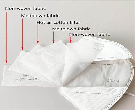 • The KN95 face mask is made of 2 non-woven outer layers, 2 melt-blown inner filter, 1 non-woven cotton middle layer, high efficiency to use.