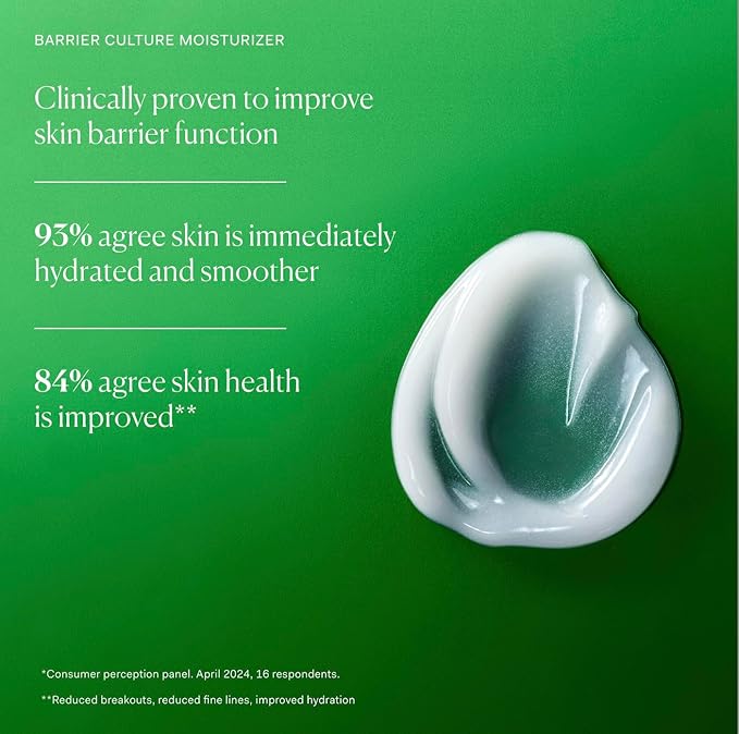 • BARRIER CULTURE MOISTURIZER is a lightweight pre-, pro- and postbiotic formula with ceramides, peptides, niacinamide and squalane that’s engineered to protect the skin barrier, replenish the microbiome, lock in moisture and smooth skin texture.