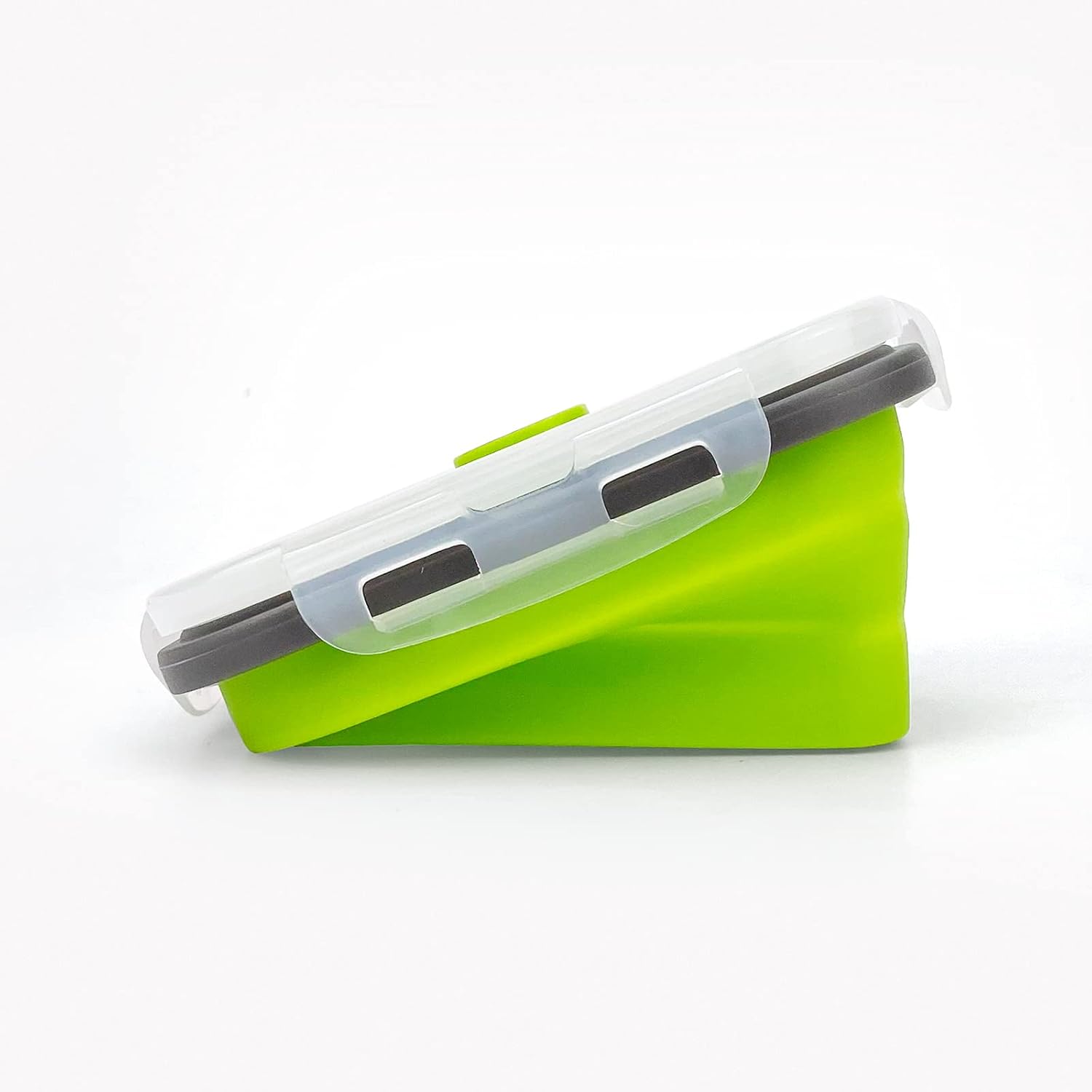 CCyanzi 3piece Collapsible Food Storage Containers with Lids, Silicone Lunch Container, Microwave & Freezer Safe, Space Saving for Kitchen Cabinet and Camping Backpack,(green gray)
