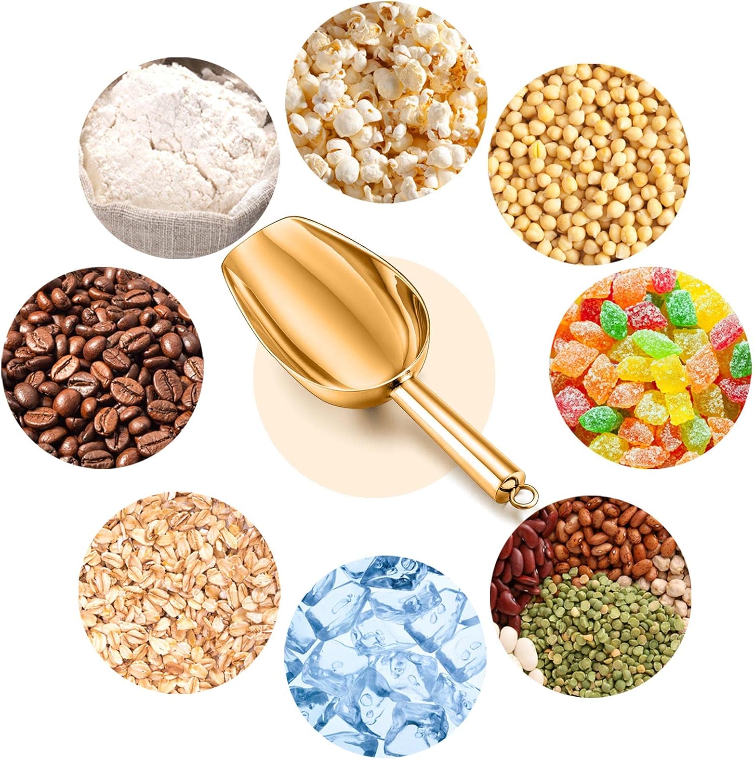 TeamFar 5oz Ice Scoop, Stainless Steel Food Scoop Metal Ice Scooper for Kitchen Bar Party Wedding, Heavy Duty & Sturdy, Easy Storage & Versatile, Mirror Finish & Smooth Edge, Gold