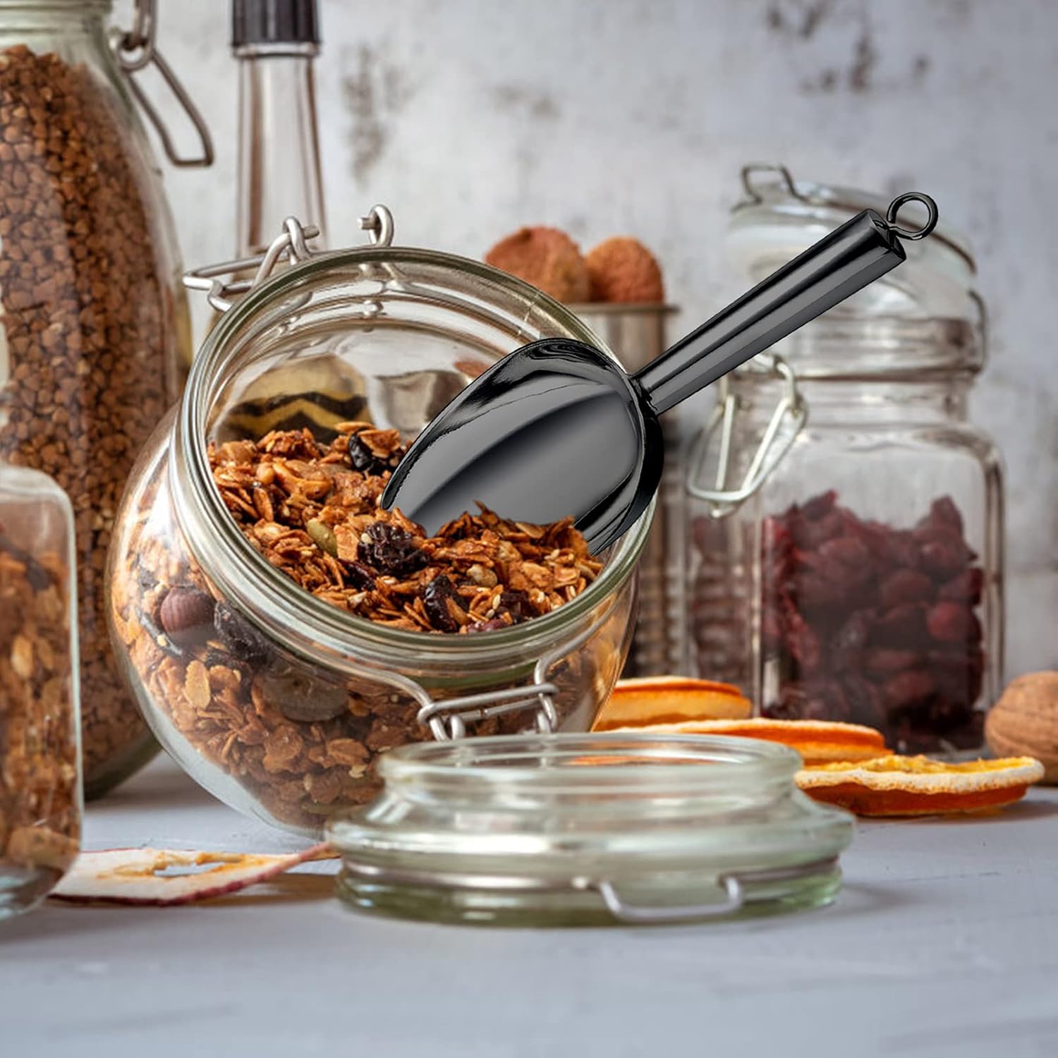 TeamFar 5oz Ice Scoop, Stainless Steel Food Scoop Metal Ice Scooper for Kitchen Bar Party Wedding, Heavy Duty & Sturdy, Easy Storage & Versatile, Mirror Finish & Smooth Edge, Black