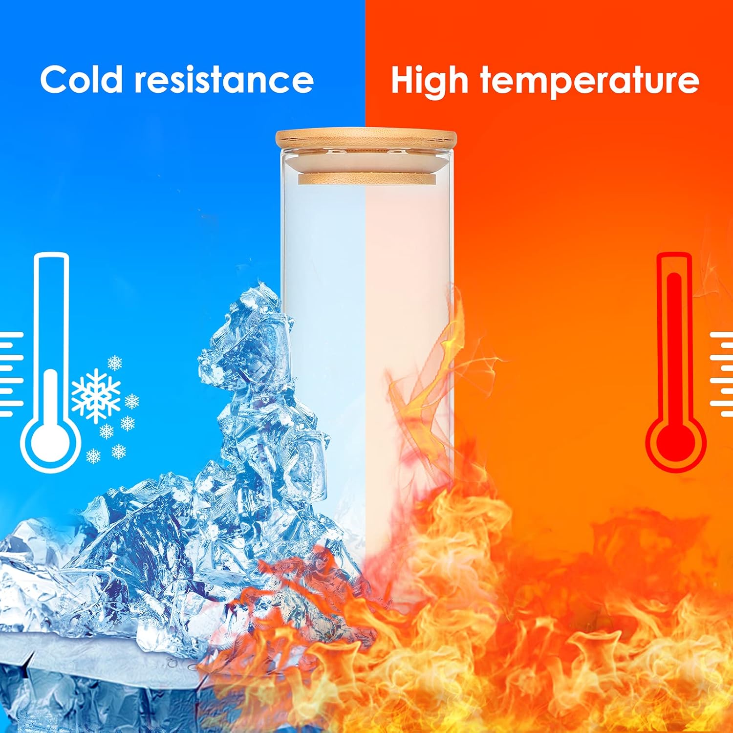 - High Quality: Glass jars made of high-borosilicate glass which features with great stability, higher hardness, heat resistance with better light transmission. And lids are made of high-quality nature bamboo. Each jar cover comes with a food-grade silicone sealant ring, more effective in preventing fluid flow and the entry of gases and bugs