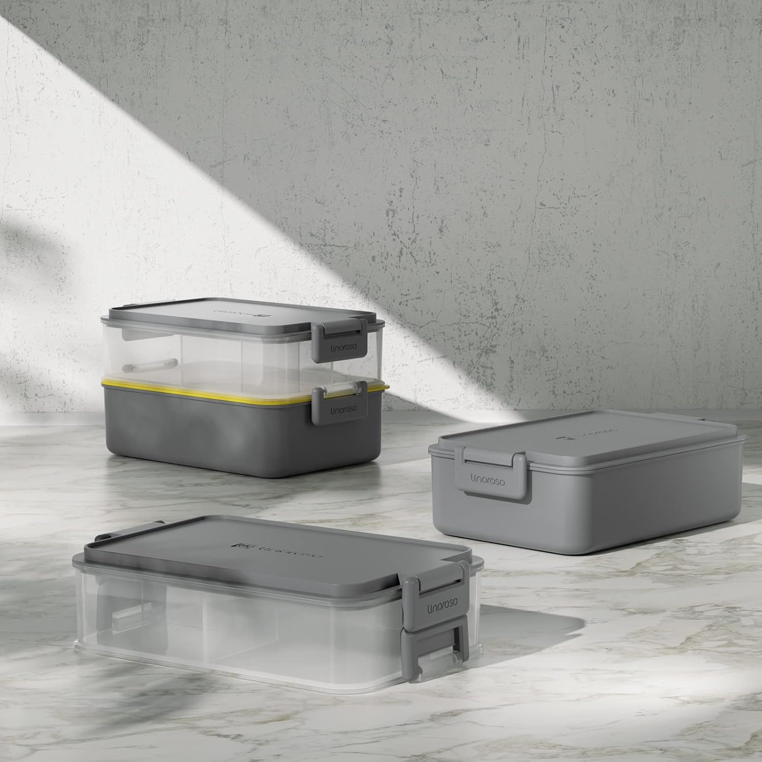 linoroso Stackable Bento Box Adult Lunch Box | Meet All You On-the-Go Needs for Food, Salad and Snack, Premium Bento Lunch Box for Adults Include Utensil Set, Dressing Containers - Ultimate Gray