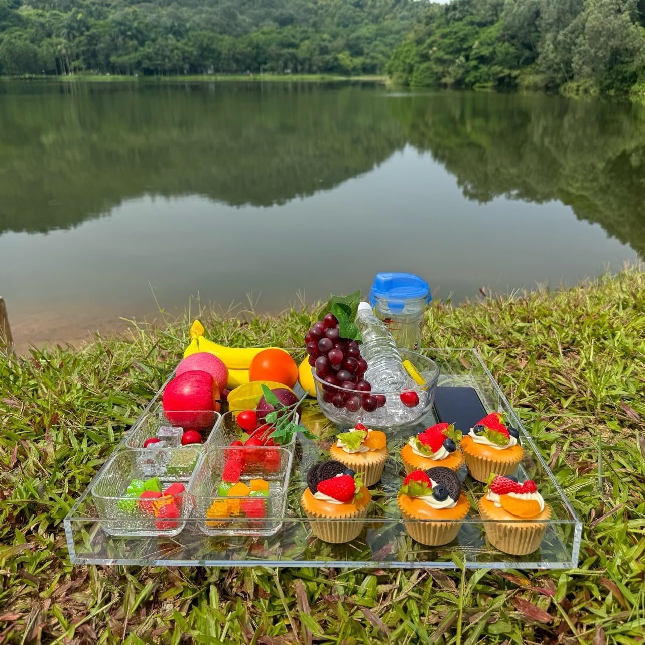 Clear Acrylic Ottoman Tray with Cutout Handles 20x20 Inch Over Sized Serving Tray, Organizer Rubber Boot Tray Decorative for Living Room Bedroom,Bathroom and Entryway Kitchen Tabletop