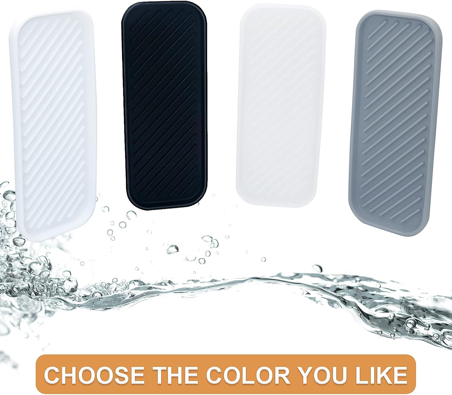 Silicone Organizer Tray, Soap and Sponge Holder for Kitchen Sink, Bathroom - Storage Tray for Dish Brush, Soap Dispenser, Dishwashing Accessories- 2 Pack (White)