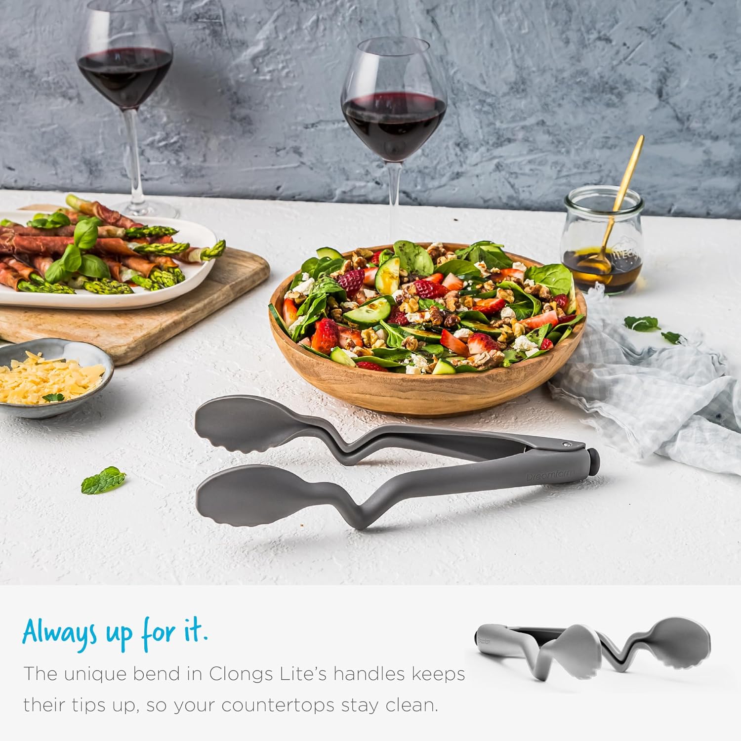 Dreamfarm Clongs Lite Nylon Kitchen Cooking Tongs with Click-Lock Open & Close - 10.5" Gray