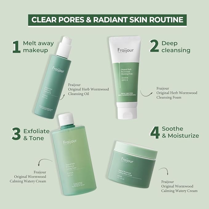 • Original Herb Wormwood Skincare by Fraijour is developed and formulated for oily to acne-prone skin types, struggling with appearance of pores and dried dead skin. This skincare line combines main botanical ingredient "Wormwood" with various plant-derived extracts to maximize antioxidizing and soothing benefits.