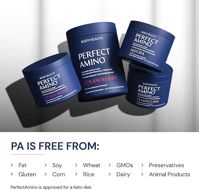• WILL NOT BREAK A FAST. BCAAs amino acids are free from sugars, yeast, gluten, soy, corn, wheat, rice, and preservatives. Perfect Aminos is vegan sourced, keto, and produced in cGMP Certified facilities in the USA for assured quality and safety.