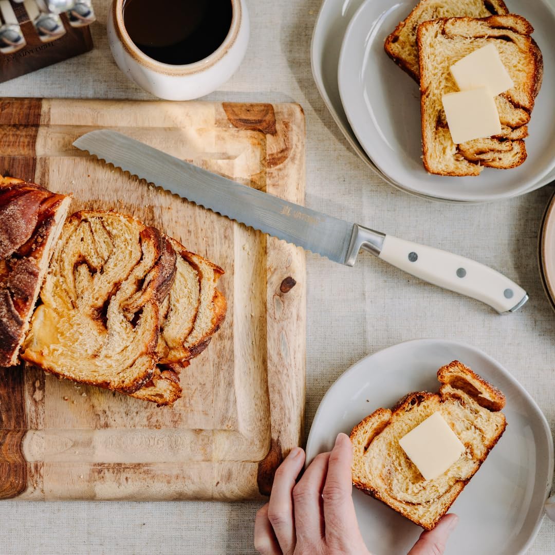 - Set Includes: 1x 8" Chef Knife, 1x 8" Bread Knife, 1x 8" Slicing Knife, 1x 5" Utility Knife, 1x 3.5" Paring Knife, 4x 5" Steak Knives, 1x Shears, 1x Acacia Block