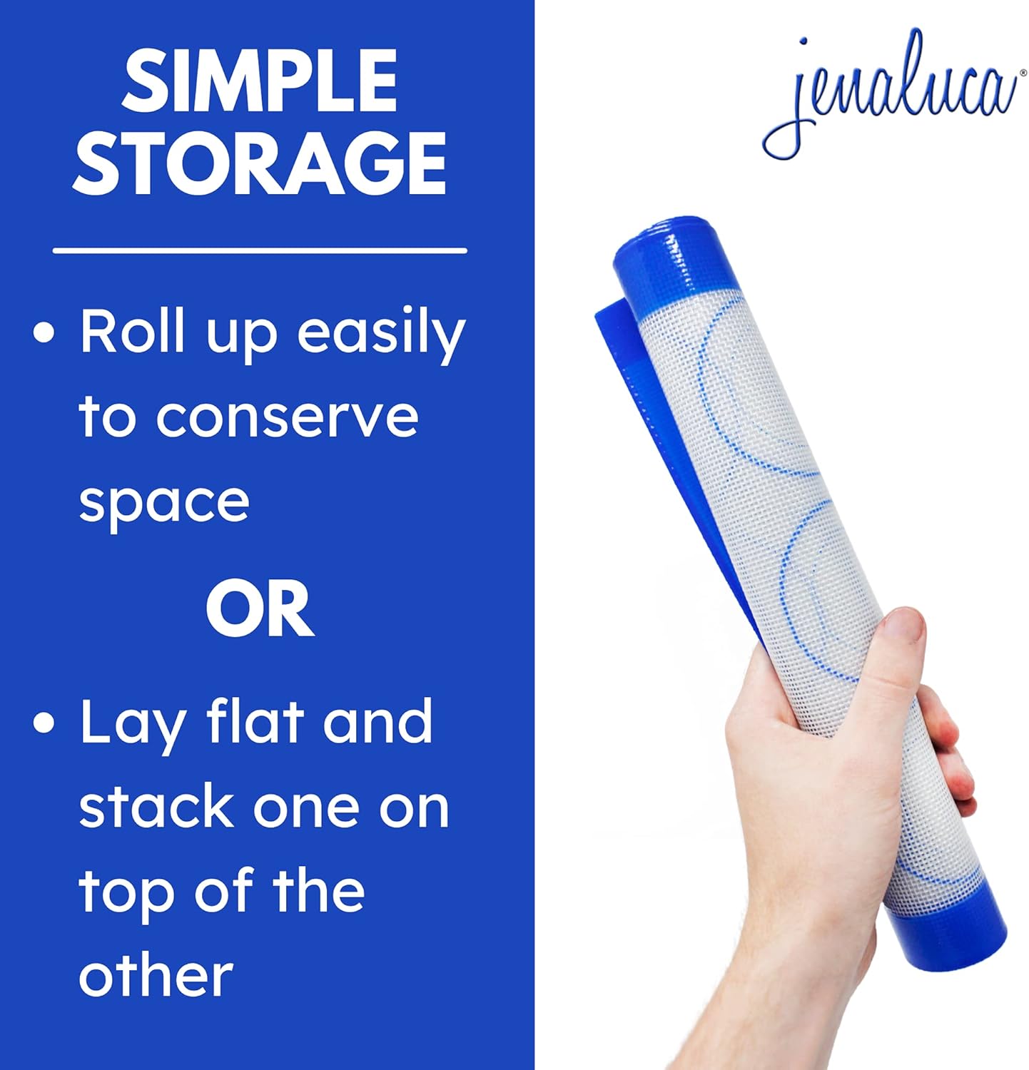 Jenaluca Silicone Baking Mats 2 Pack - Non-Stick Mats with Cookie Measurements Reusable Food Grade Silicone for Cookies, Pastries & Meal Preparation - Non Slip - 16.5 x 11.6