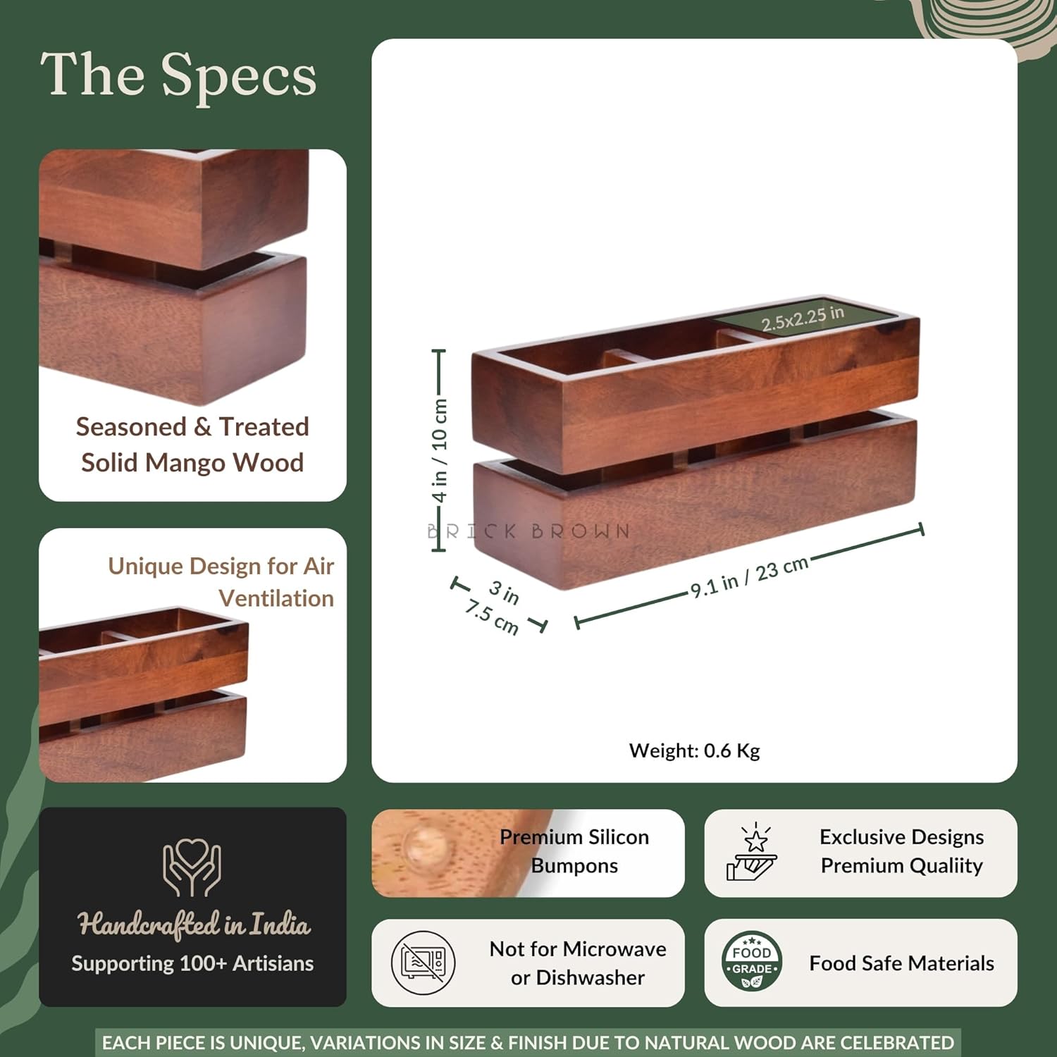 Brick Brown Premium Handcrafted 3-Partition Wooden Cutlery Holder Storage Spoon, Knife, Fork, Chopstick Caddy Self Organizer Stand for Home Kitchen Tableware Restaurant in Mahogany(9.1x3x3.9Inch)
