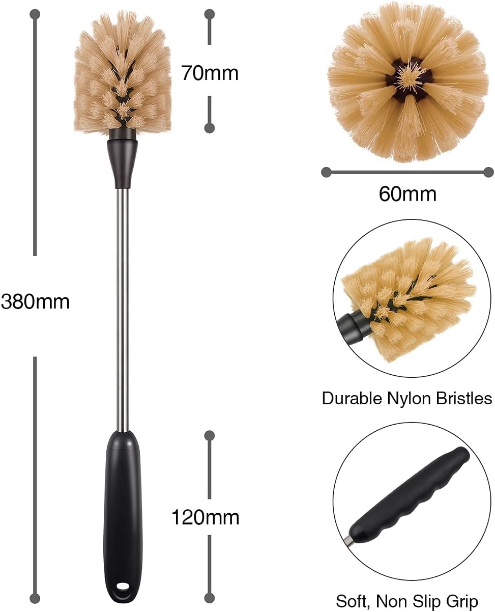 - ✅ EXTENDED HANDLE: Rubber-covered handle and ergonomic grooves are designed with comfort features.The 14.9-inch extended cleaning brush is designed to reach the bottom of the bottle for an easy deep clean.