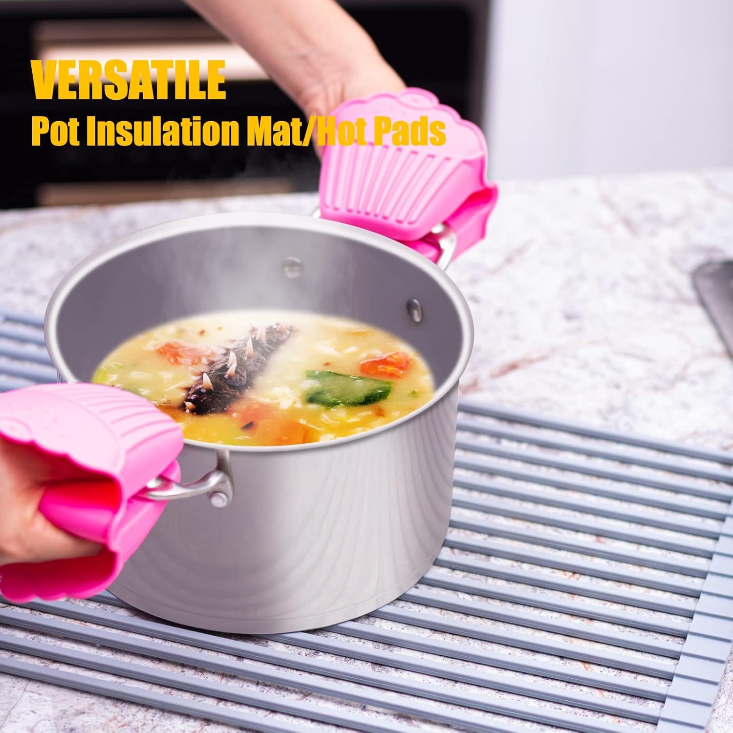 Silicone-Coated Stainless Steel Over The Sink Multipurpose Roll-Up Dish Drying Rack, 17.2"X12.2", Heat Resistant Non Slip Dish Draining Rack BPA Free Dishwasher Safe (S, Gray)