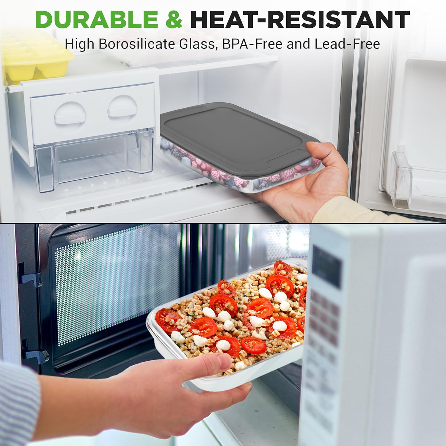 NutriChef 8-Piece Glass Baking Dish Set with Lids, (4 Stackable Rectangular Glass Dish and 4 BPA-Free Lids), Baking Pans for Lasagna, Meatloaf, Casserole, & Leftovers, Cooking, & Dishwasher Safe, Gray