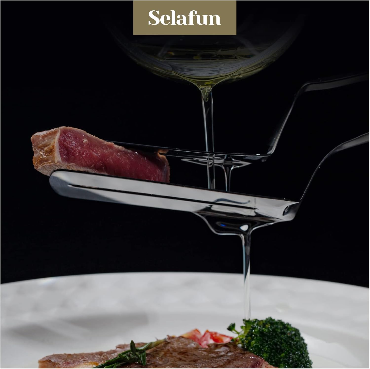- UPGRADE DESIGN - The upgrade steak clip is designed with a hollow and widened design. The hollow design of the double-sided flat shovel is convenient for draining oil. The cooking spatula tong Prevent scattering when turning the food. Slotted clamp drains excess grease back into the pan to make food more healthy.