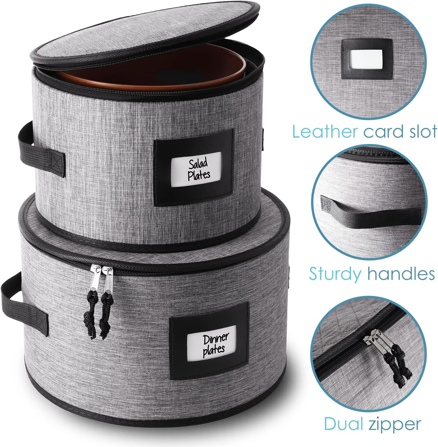 - Convenient and Stylish: Our dish storage protectors boast sturdy handles, zippered lids, and faux leather label slots for elegant kitchen organization and storage.