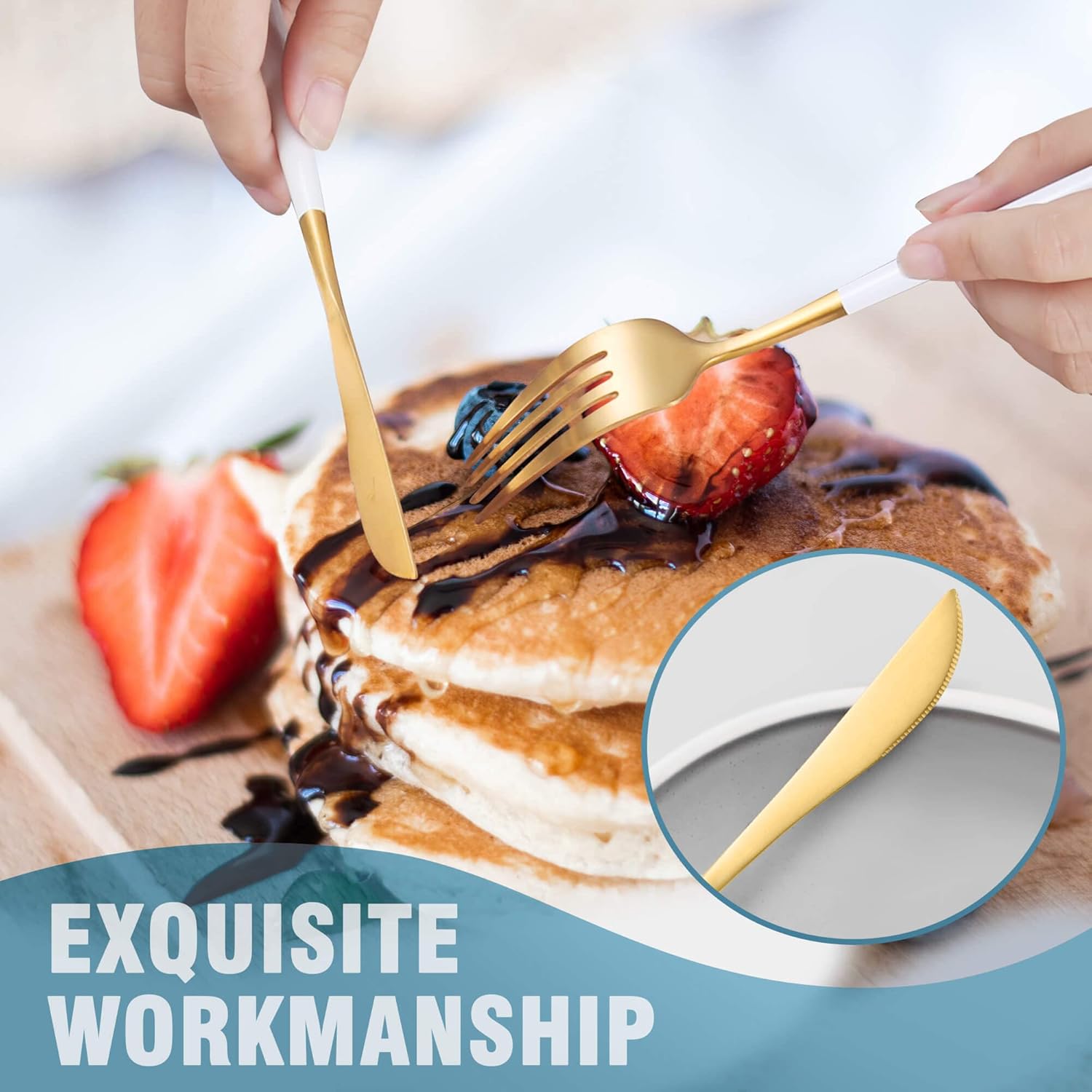 - MODERN DESIGN : The cutlery set is modern and luxury appearance can be a good match for your existing dinnerware set and elevate everyday meals into a fine dining experience