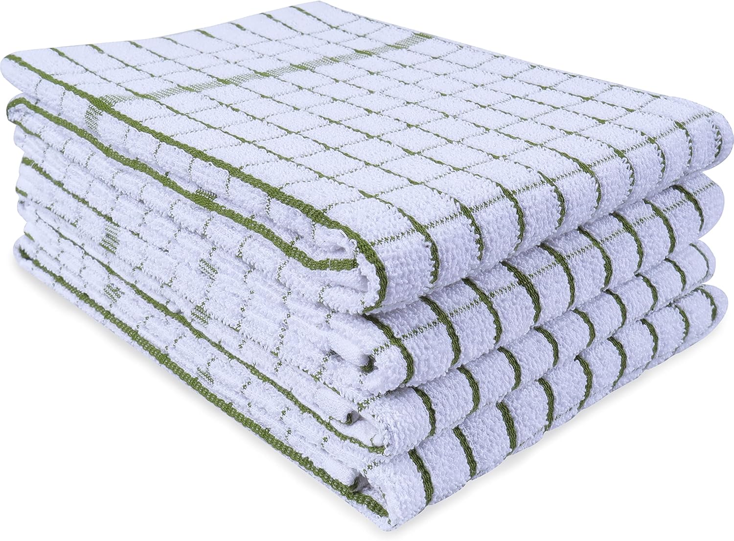 - SET OF 4 DISH TOWELS: This pack includes 4 premium 20" x 28" kitchen dish cloths made from soft, highly absorbent terry cotton. Perfect for everyday kitchen use, these dish towels offer excellent absorbency and durability for drying dishes, cleaning, and wiping surfaces.
