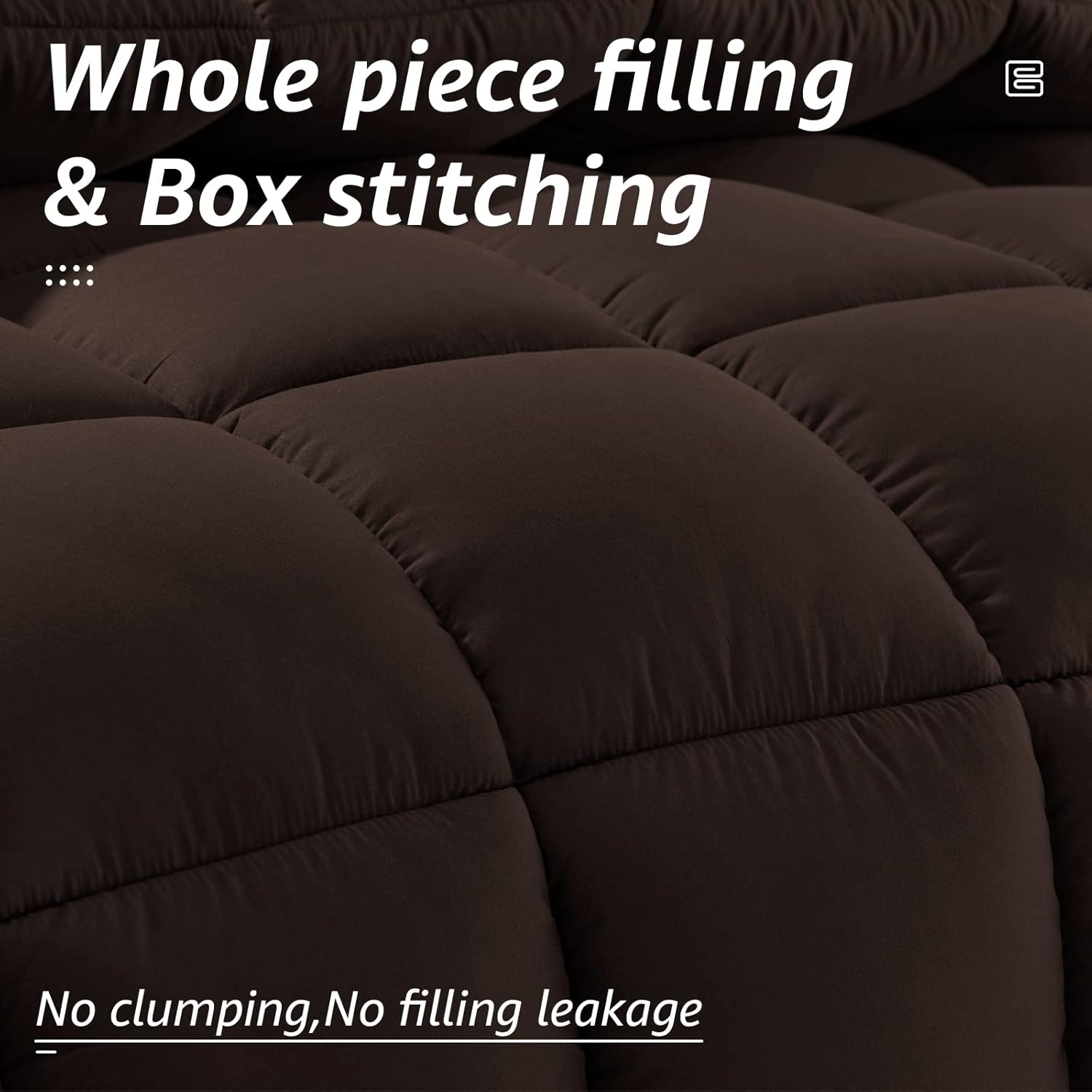 HYLEORY All Season Queen Size Bed Comforter - Cooling Goose Down Alternative Quilted Duvet Insert with Corner Tabs - Winter Warm - Machine Washable - Brown