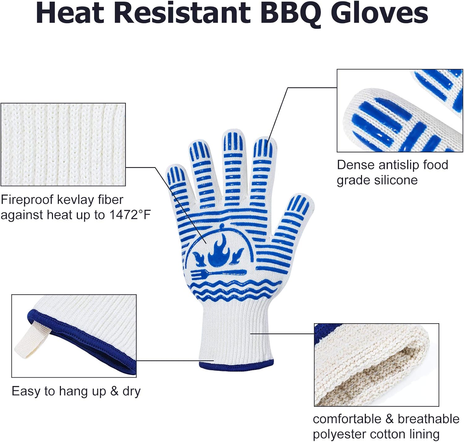 - Versatile Design: Oven gloves feature a unique hook design that keeps them conveniently within reach during your next barbecue session. No more searching for your gloves when you need them the most.