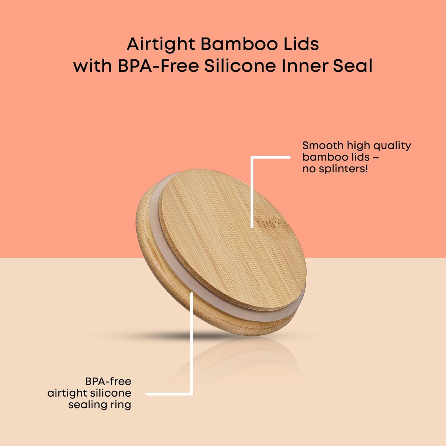 - Jars with Airtight Lids for Freshness: Many jars have bamboo lids but not all can boast a rubber seal that's truly airtight. The satisfying "pop" on opening tells you it has been hermetically sealed - something you'll find in the best kitchen canisters. Air and odors stay out completely!