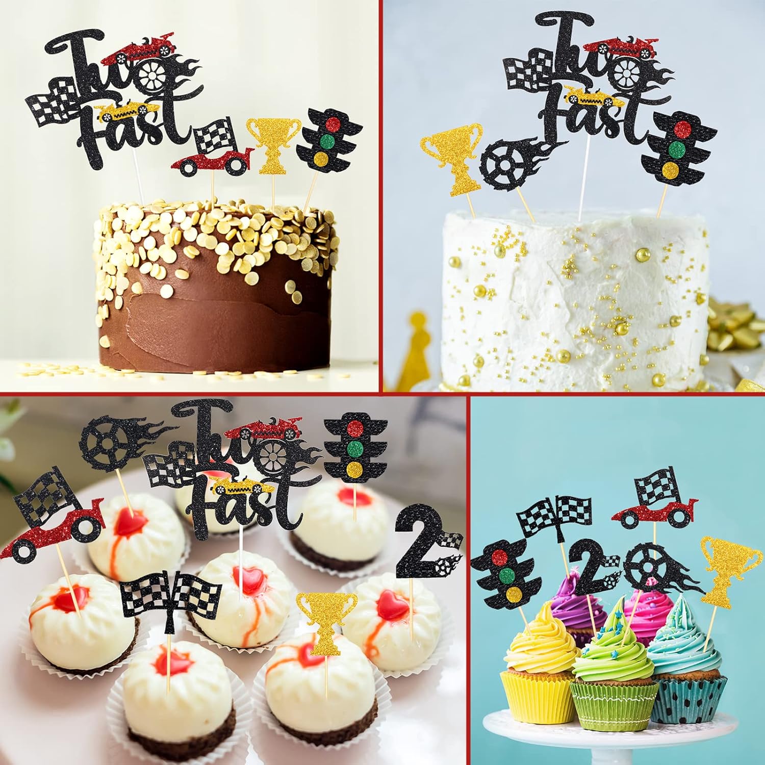 - Racing Theme: cupcake car toppers adopts the design of racing theme, with patterns such as traffic lights, flags, racing cars, etc., with conspicuous colors, beautiful and attractive