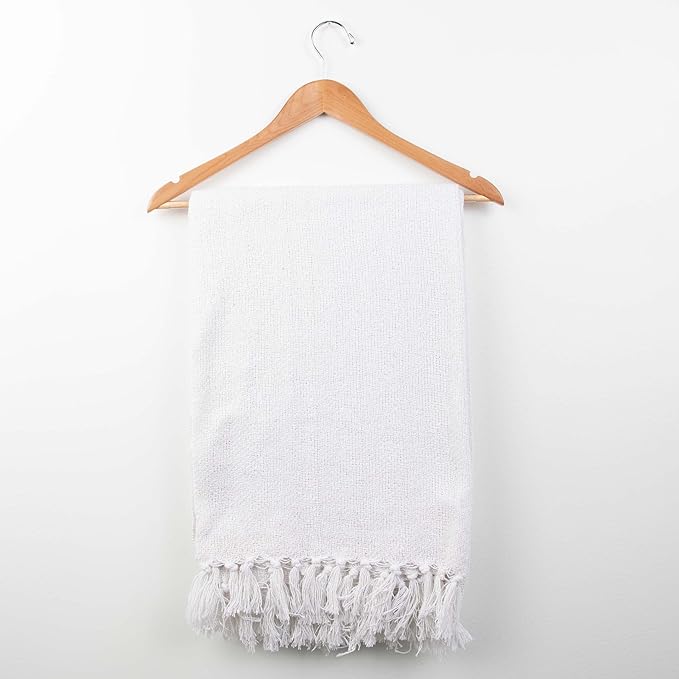 Arkwright Common Ground Bulk Blankets - Pack of 12 - Reversible 100% Cotton All Season Lightweight Couch Bed Throws for Wedding Guests, Travel, and Outdoor Events, 50 x 70 in, White