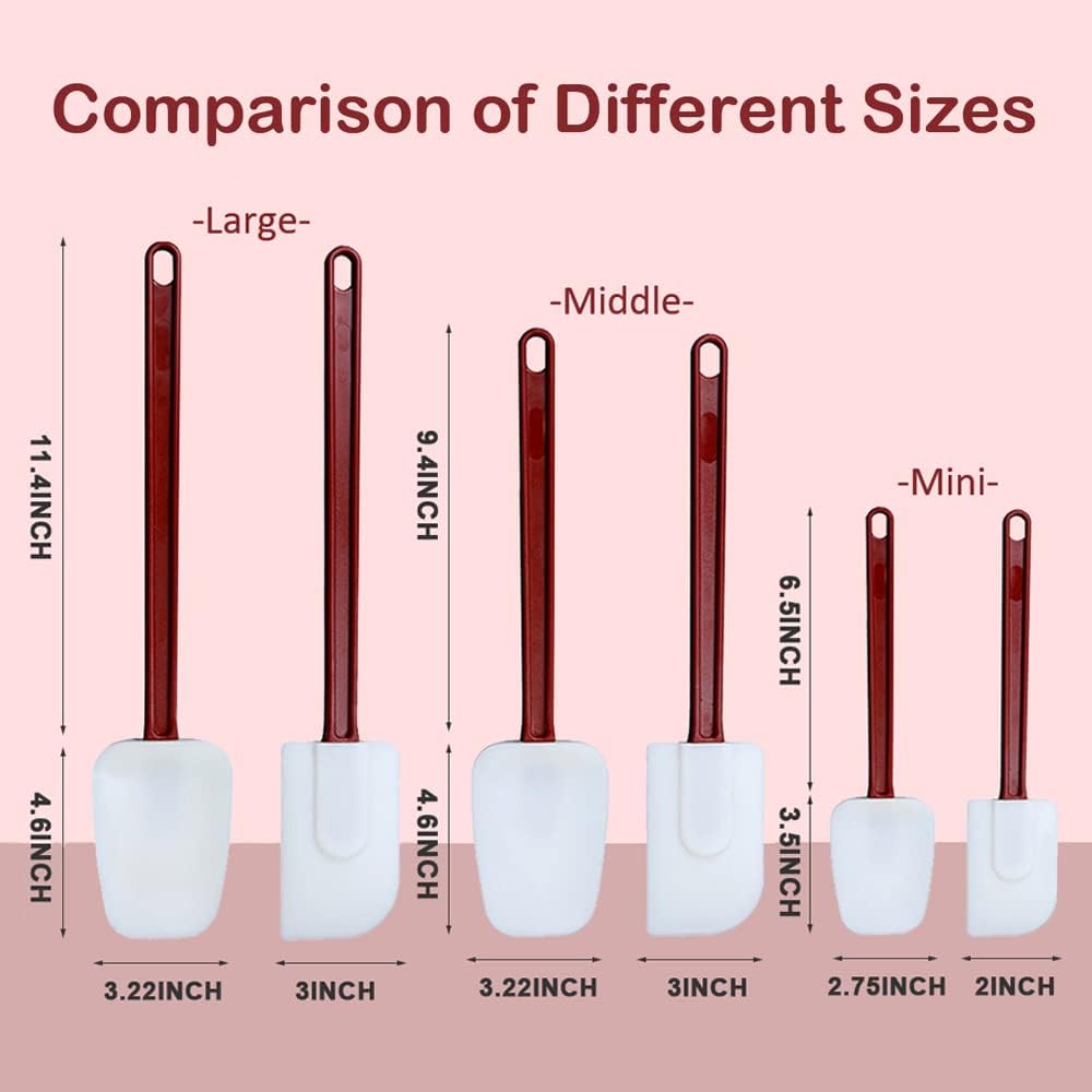 - 【Silicone Spatula Set】 The product contains two silicone spatulas, one is flat and one is spoon type head, which can fit any shape of container. There are three different sizes of 9.5"/13.5"/16.5" for you to choose from, which can meet your different needs