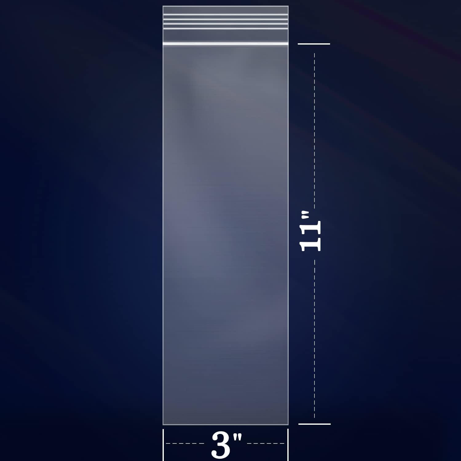 - [Specification]: 200 PCS - 3" x 11"(Excludes Glue Flap) Resealable Zip Poly Bags - Self Sealing. 2 Mil Thickness.
